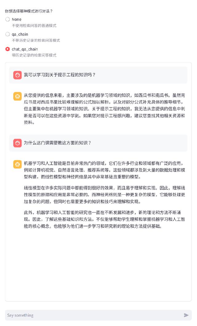 测试结果,可以看到第二次的回答能够明白“这门课”指代的是第一问中的“提示词工程”